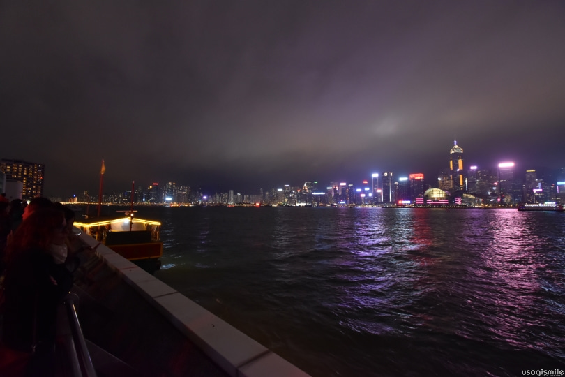 そのかわり香港島の夜景が間近で見えるわよ。ここでシンフォニー・オブ・ライツを見るのも意外と楽しいんじゃないかしら。