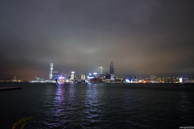 九龍半島の夜景が綺麗に見えるかと思ったんですが、結構距離があるのでそこまでよく見えないですね……